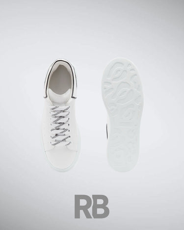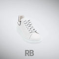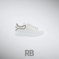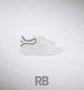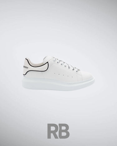The Alexander McQueen Oversized Sneaker is a bold reimagining of a classic low-top silhouette. Crafted from smooth white calf leather, this sneaker features a sleek, minimalist design with a contrasting black heel tab for a signature touch. The exaggerated rubber sole adds a modern, elevated feel, offering both comfort and statement-making style. Finished with perforated side detailing for breathability and the iconic Alexander McQueen logo stamped on the tongue and heel, this sneaker is the perfect fusion of luxury and streetwear.